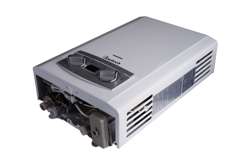 Încălzitor instantaneu apă menajeră, pe combustibil gazos (GPL), cu tiraj natural.